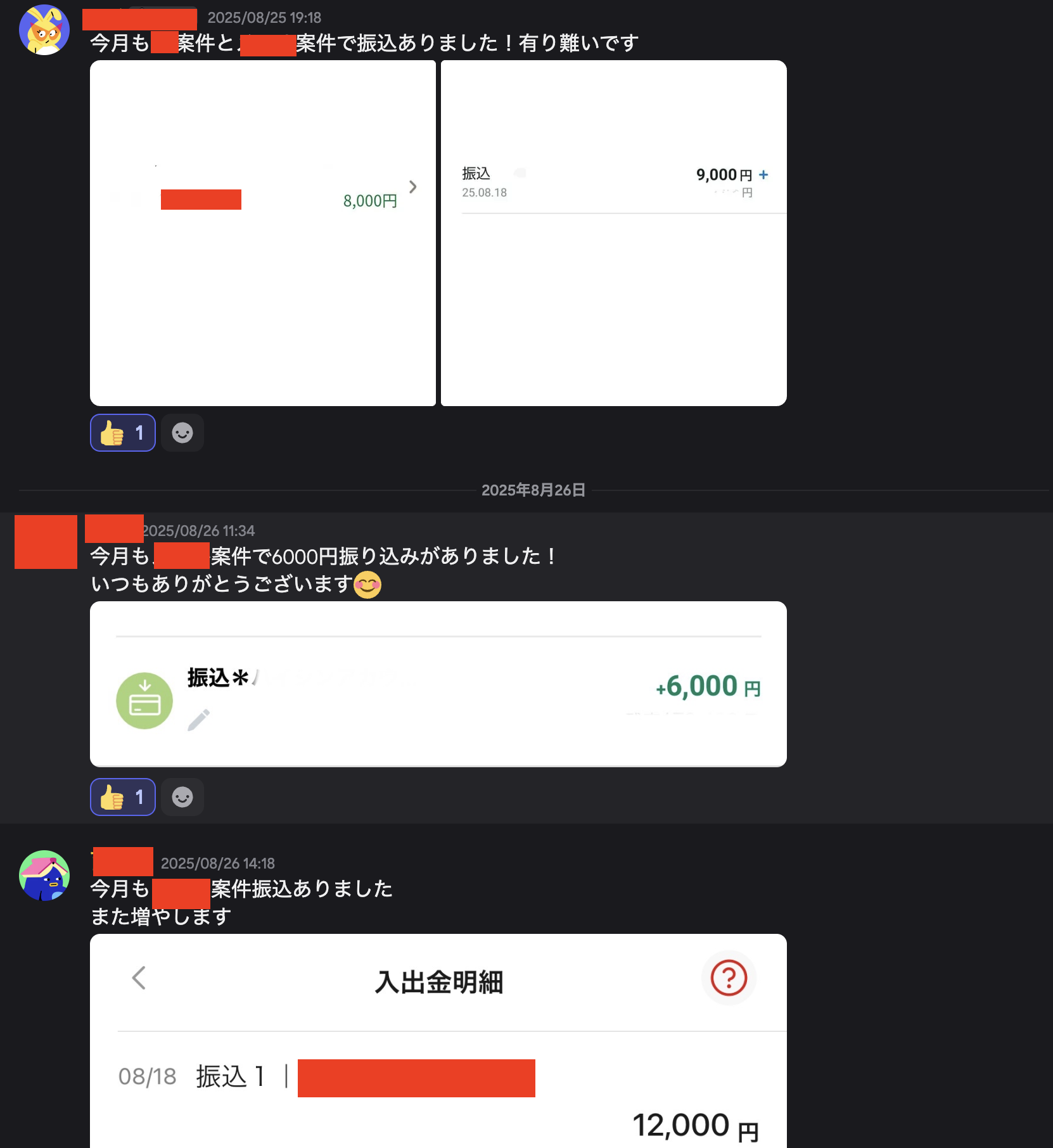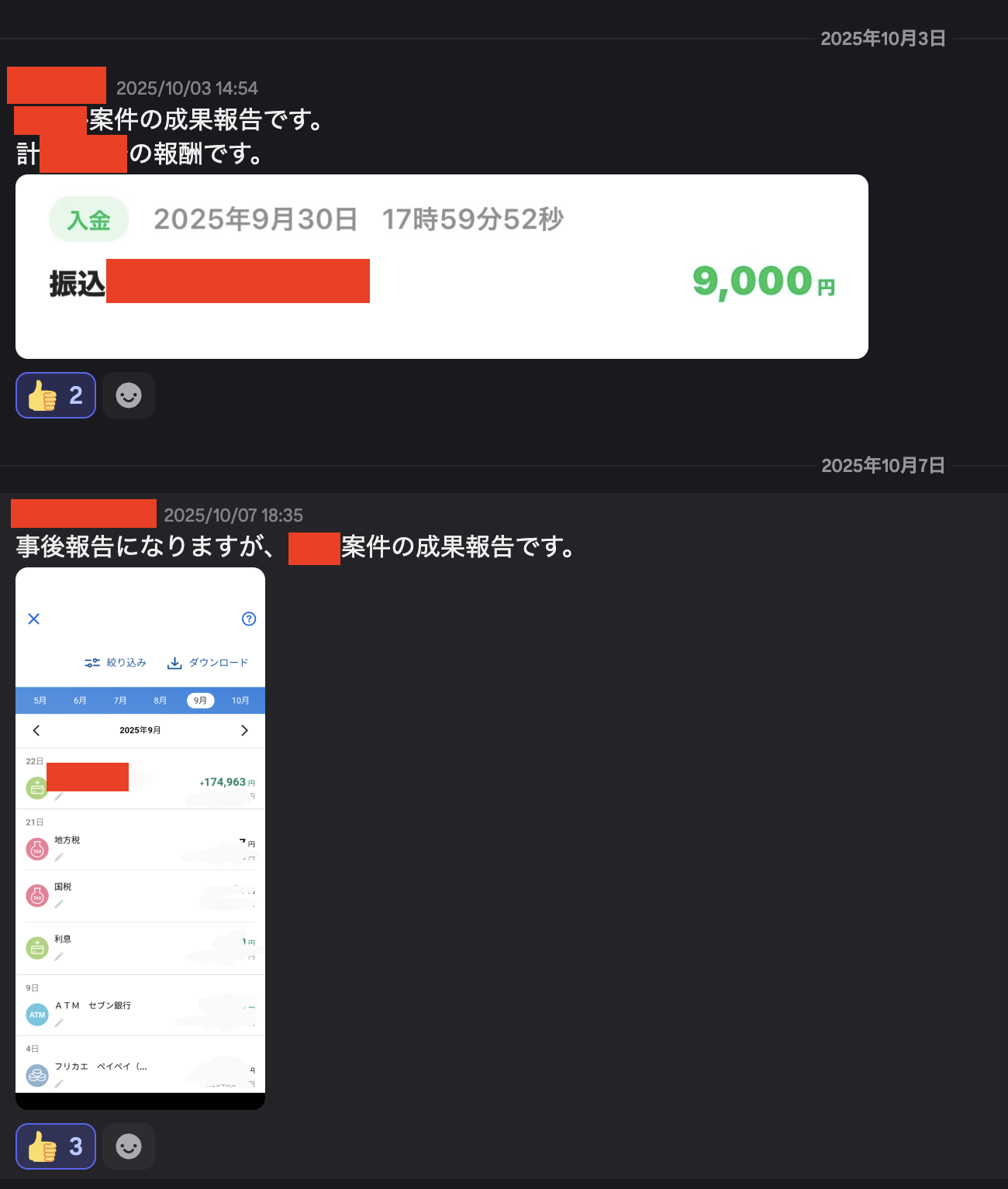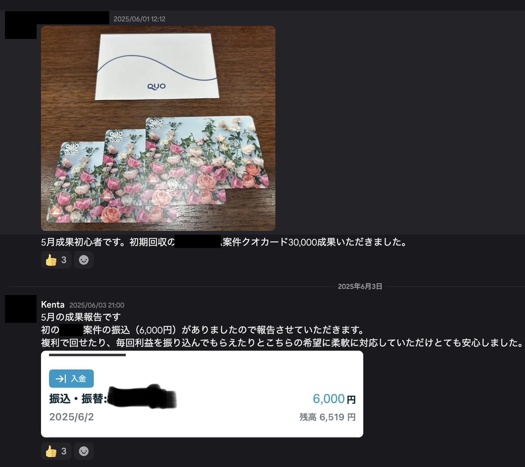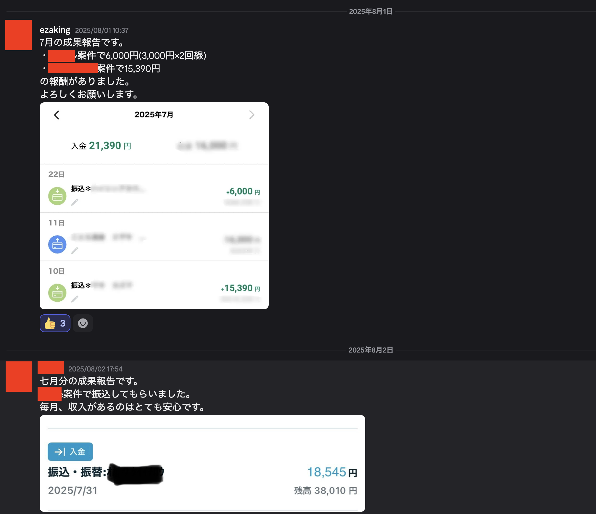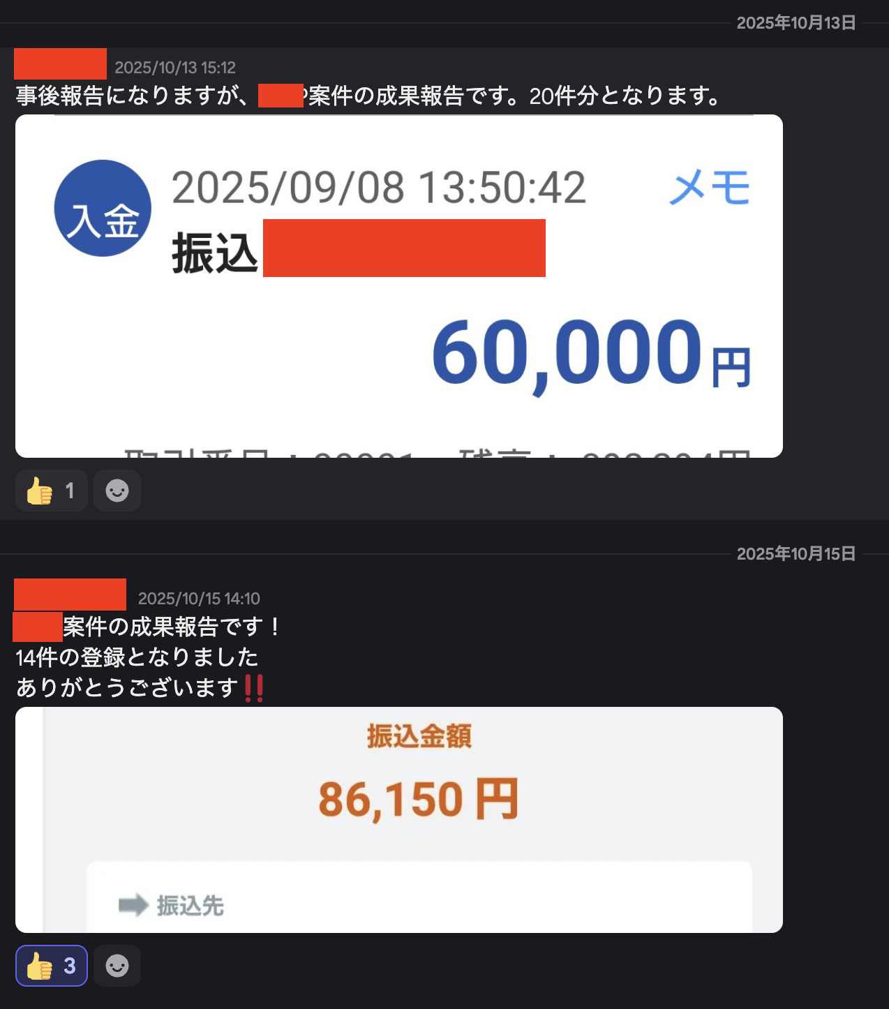 ※成果報告の日付を見てもらえば直近でもきちんと稼げていることが変わると思います!!