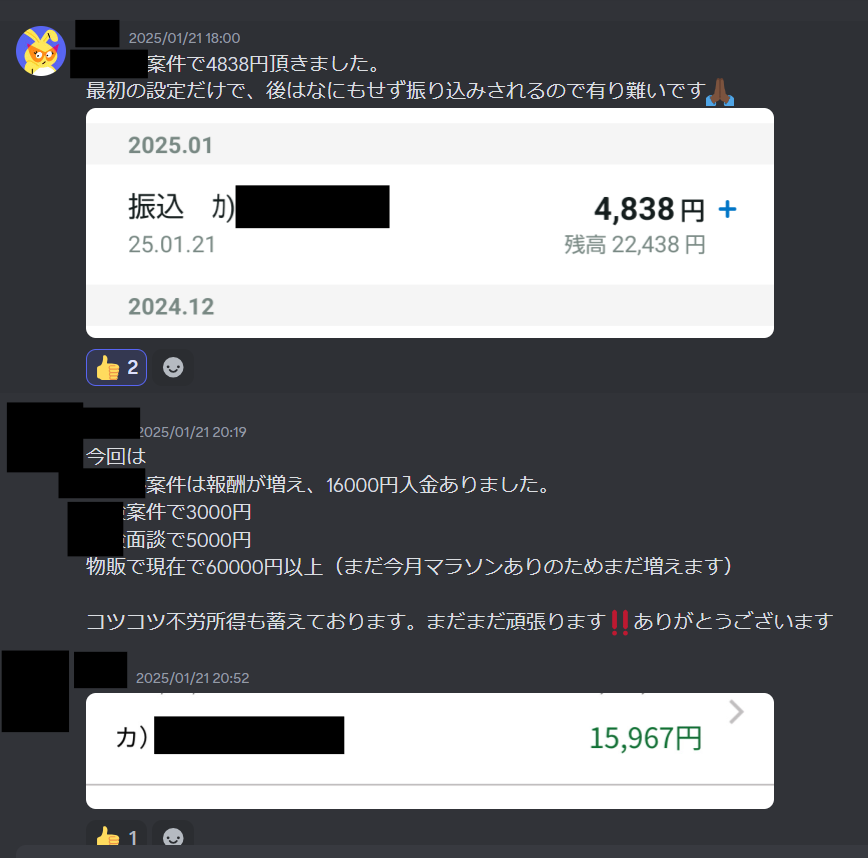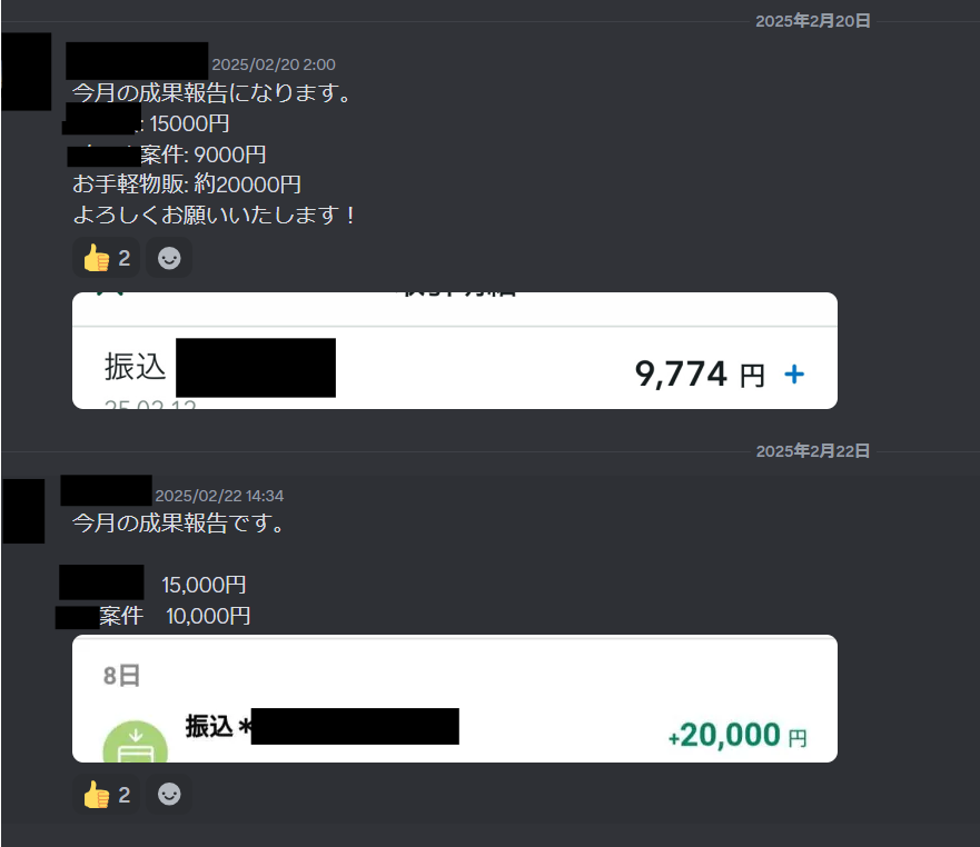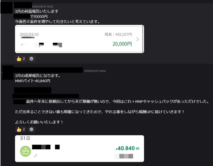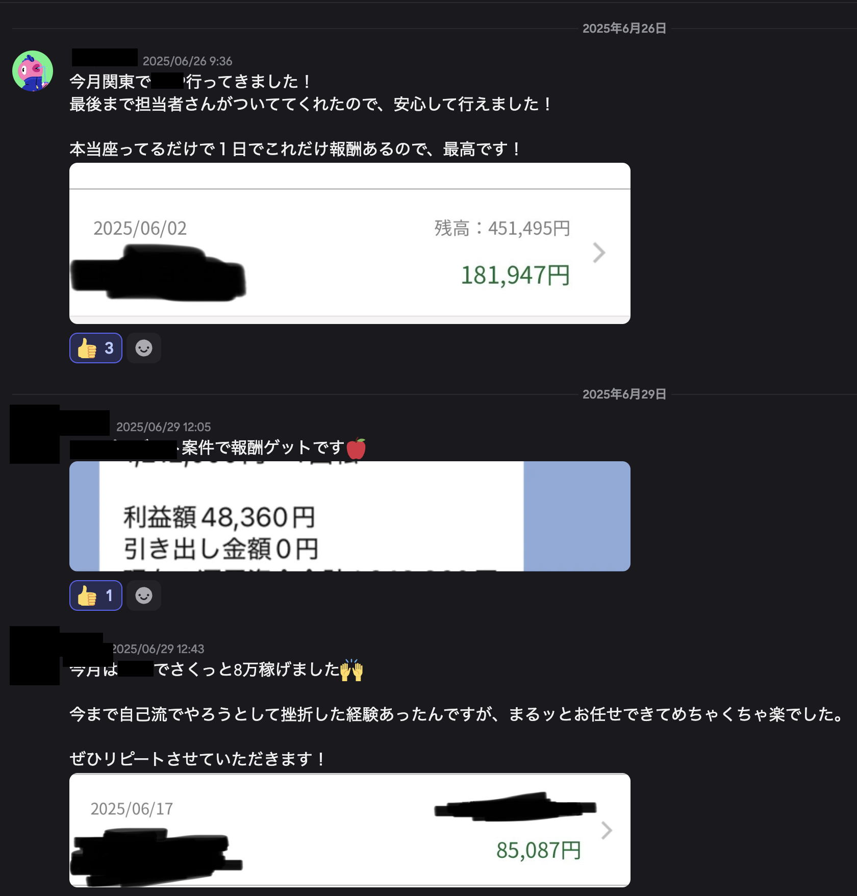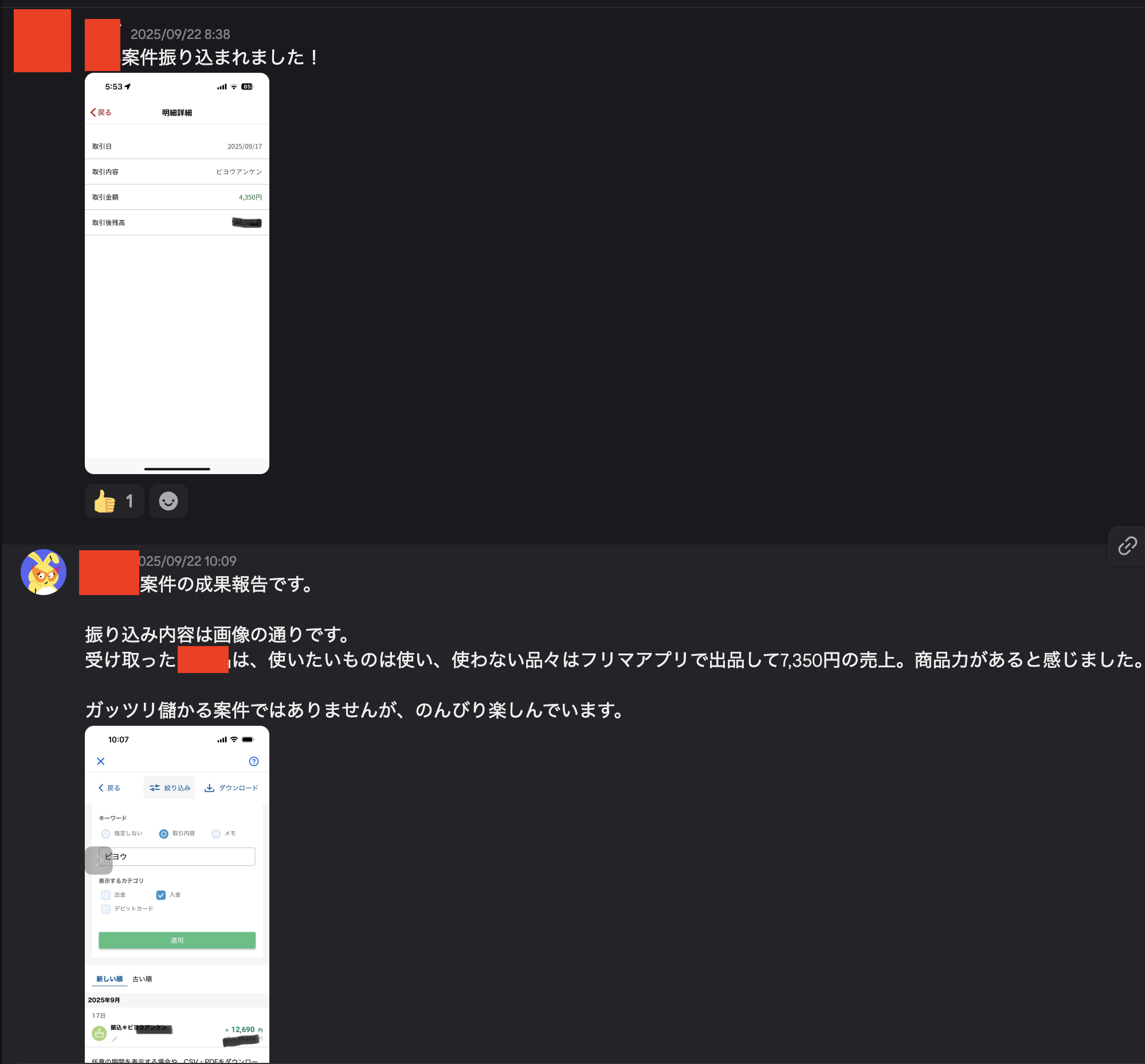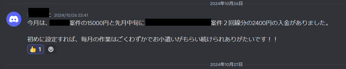 ※成果報告の日付を見てもらえば直近でもきちんと稼げていることが変わると思います!!