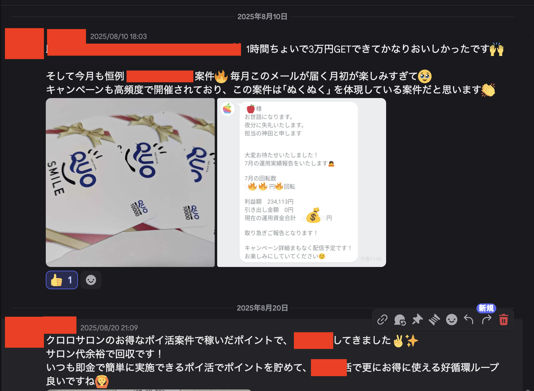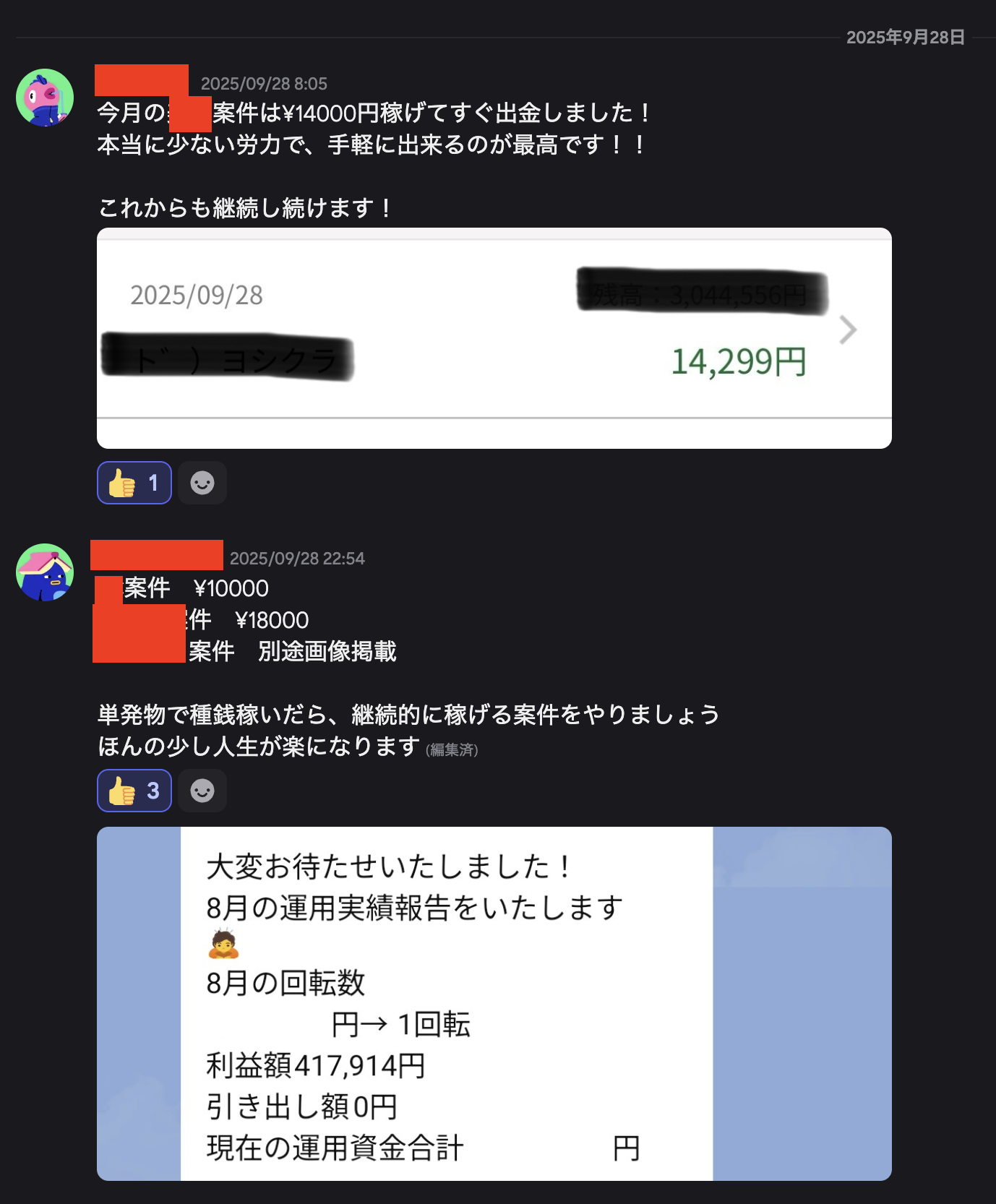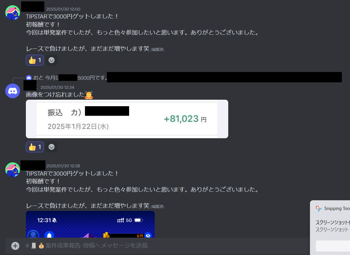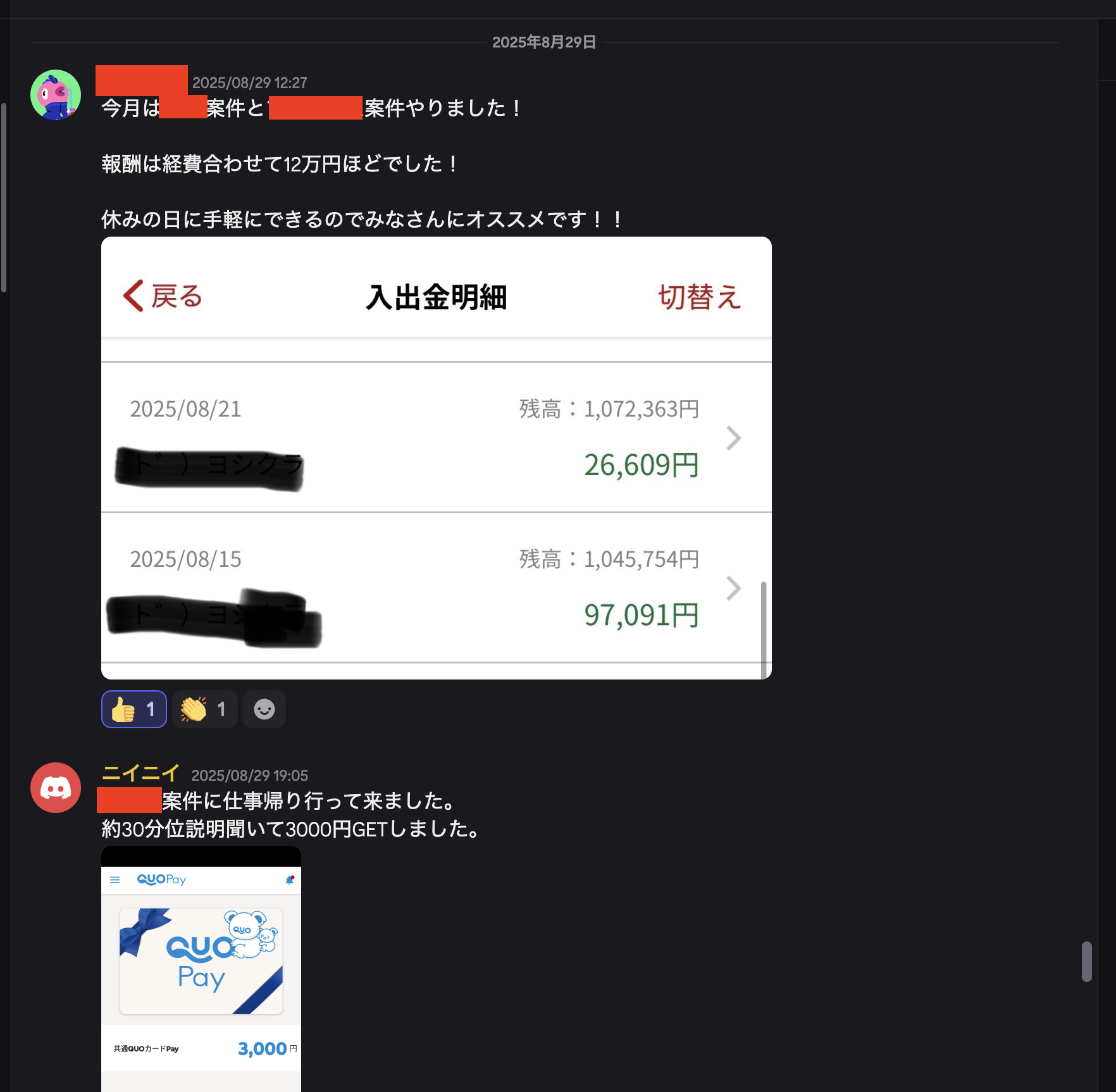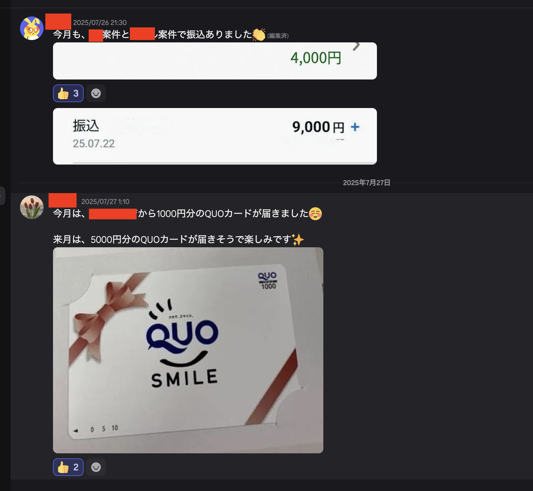 ※成果報告の日付を見てもらえば直近でもきちんと稼げていることが変わると思います!!