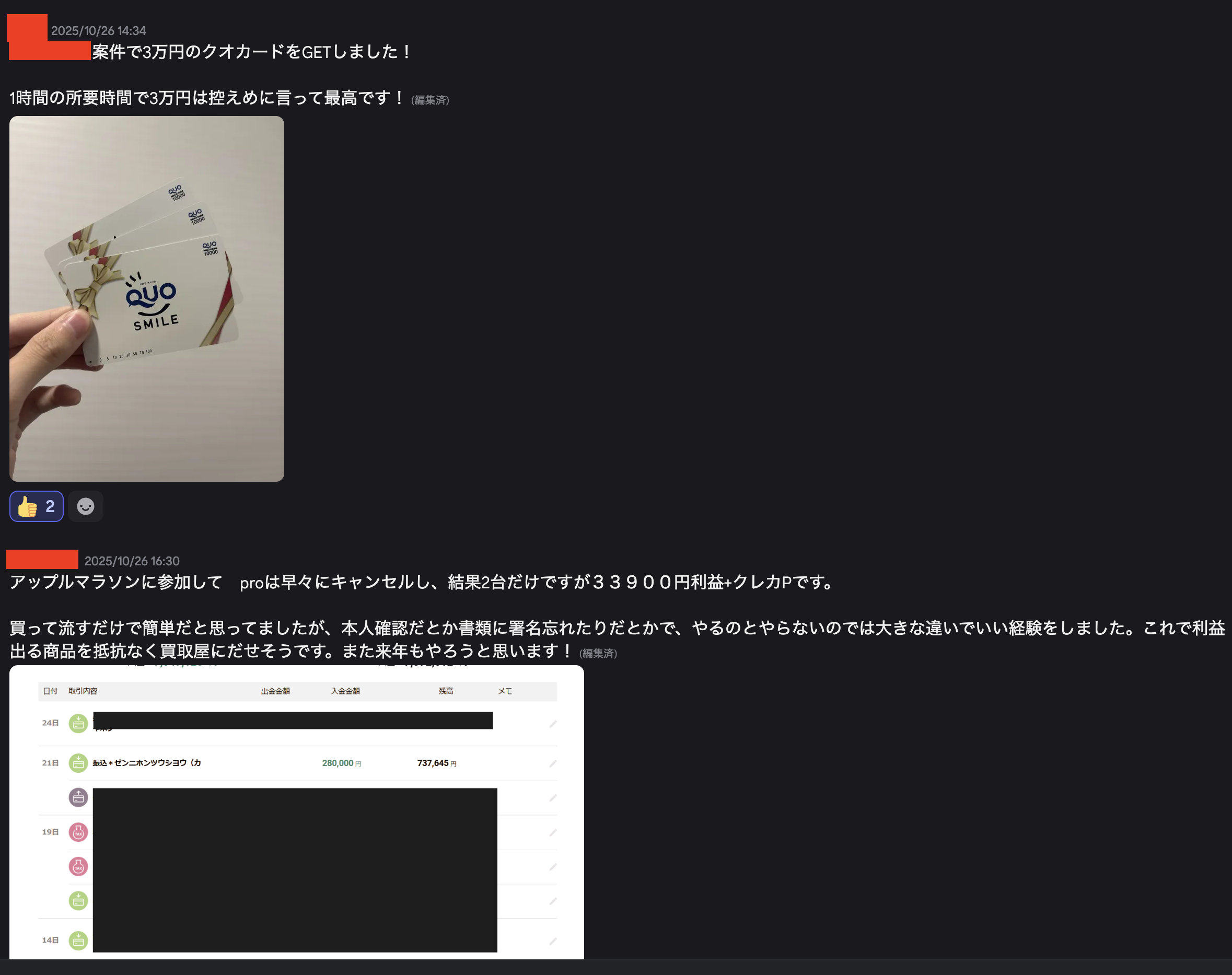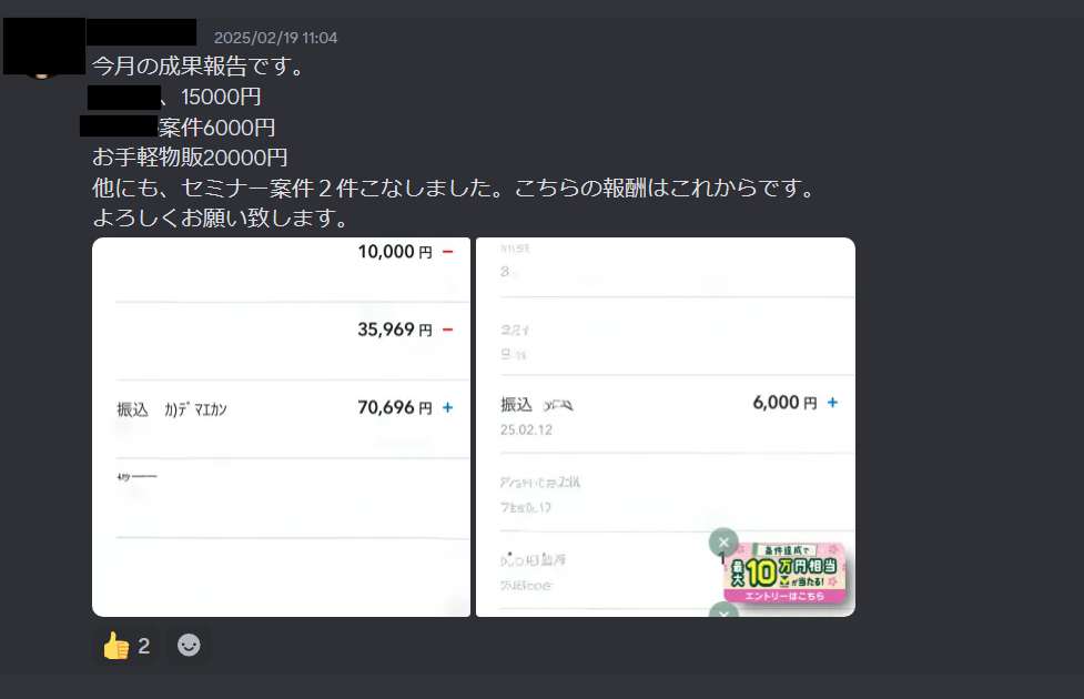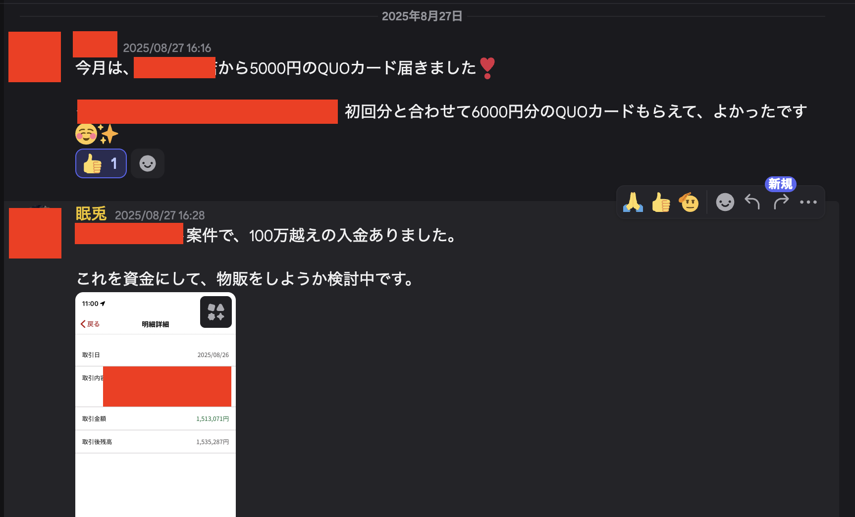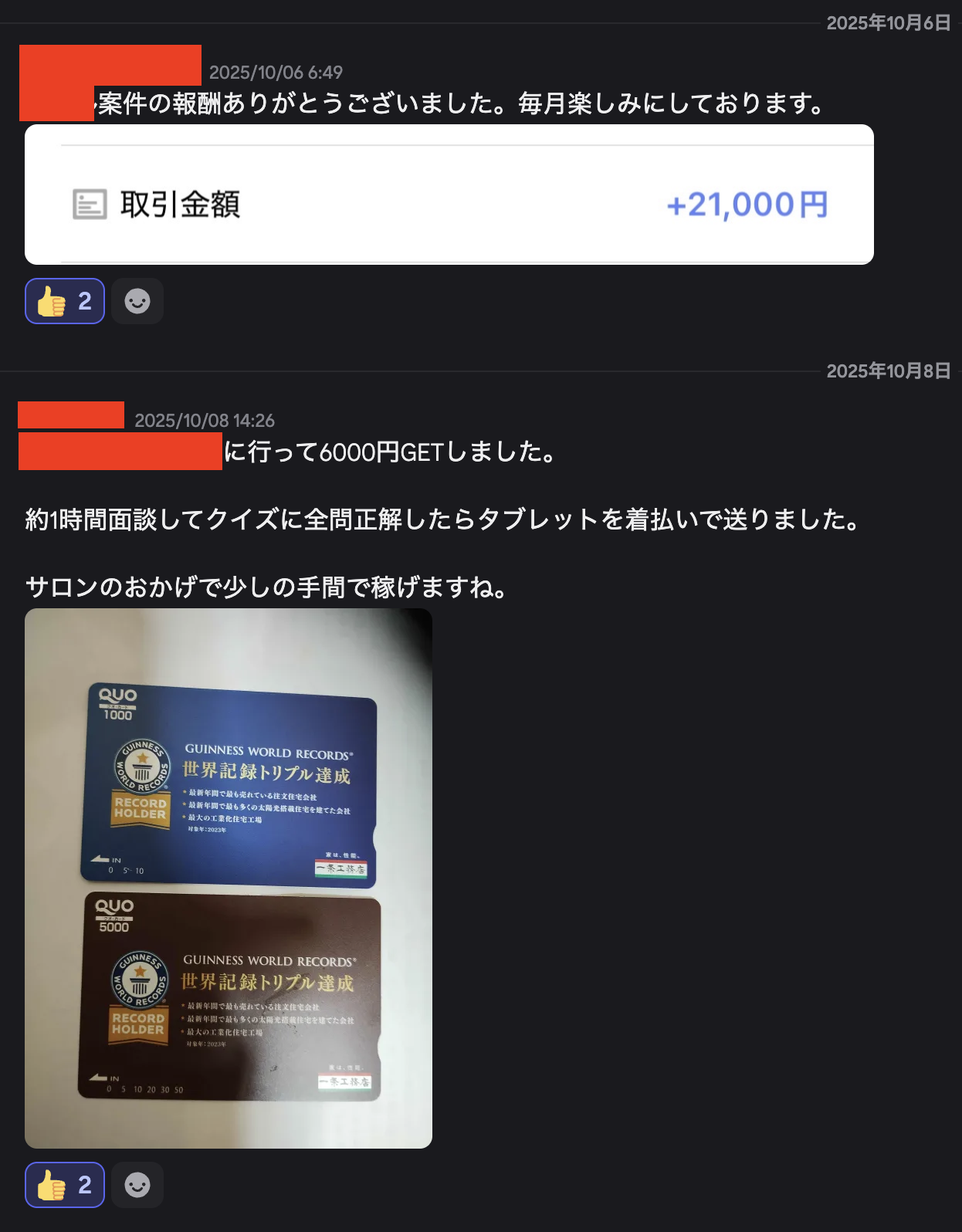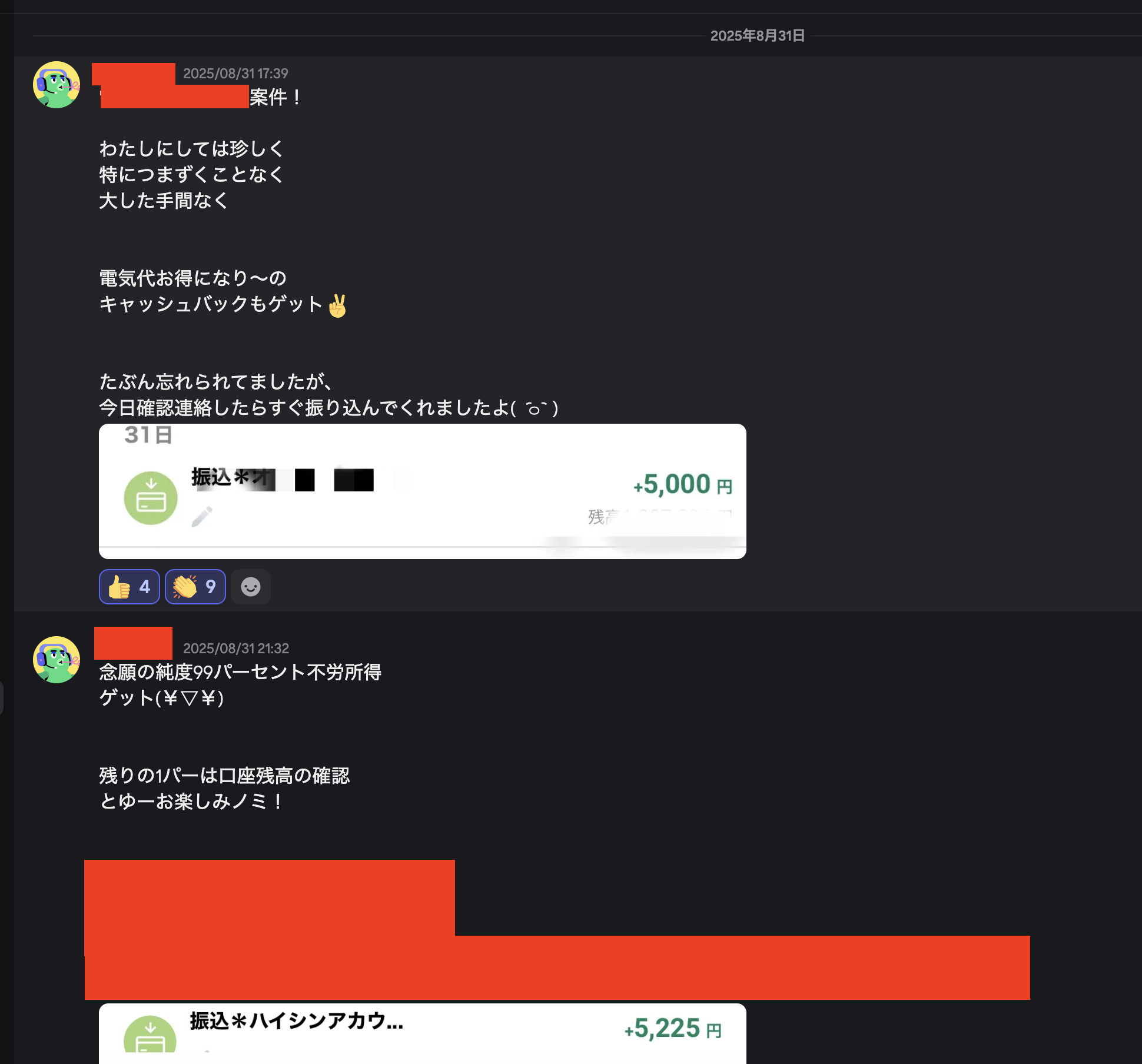 ※成果報告の日付を見てもらえば直近でもきちんと稼げていることが変わると思います!!